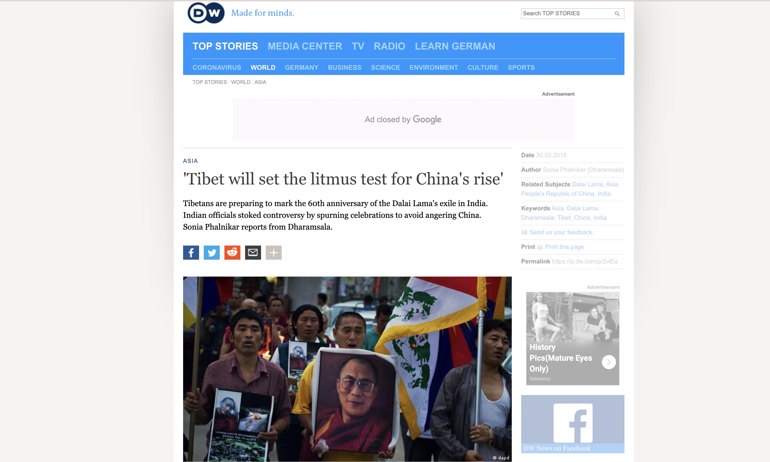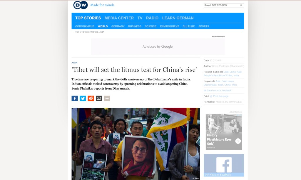 Tibet will set the litmus test for China’s rise. Published in Deutsche Welle (DW), March 30, 2018