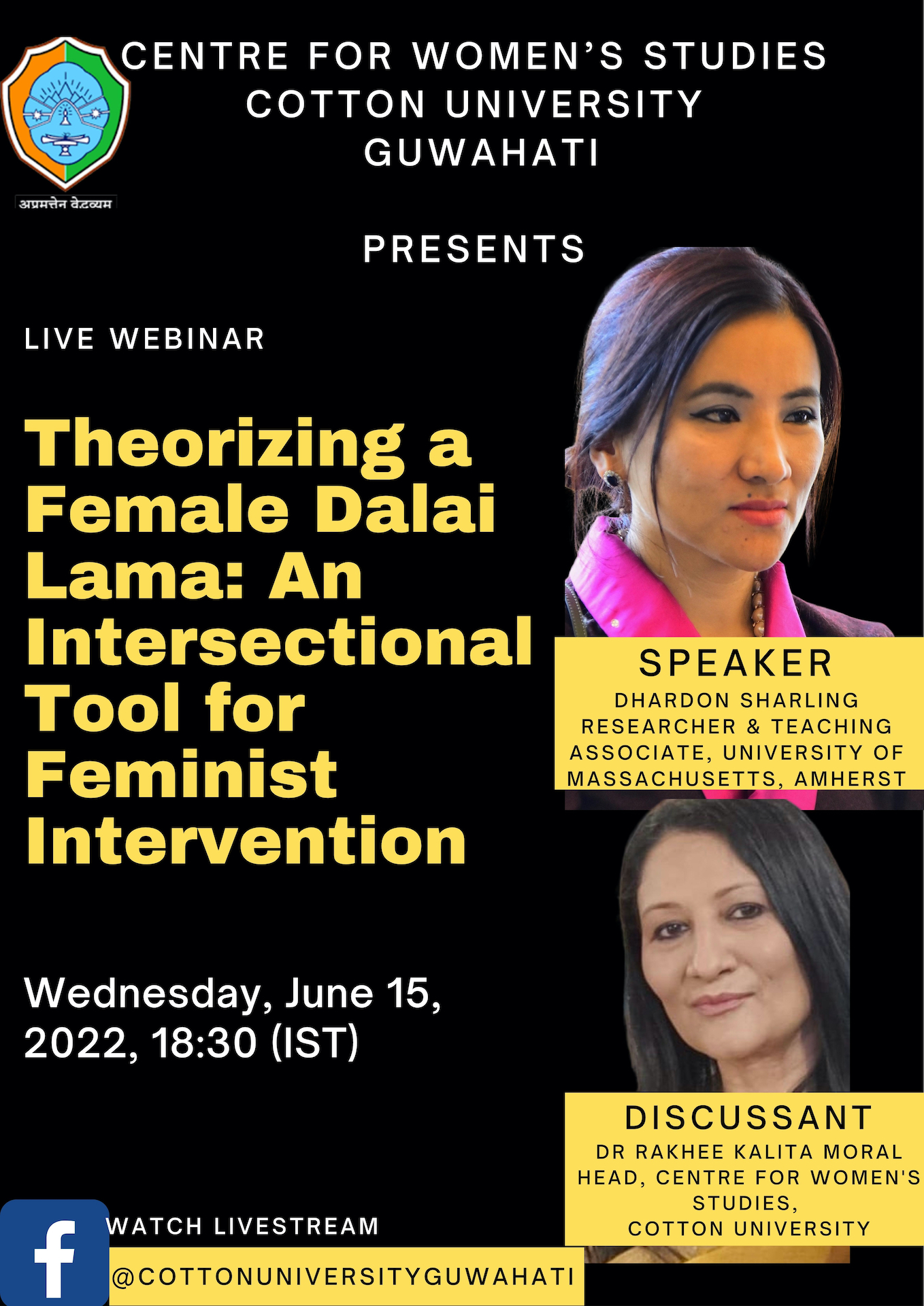 Speaker, Theorizing a Female Dalai Lama: An Intersectional Tool for Feminisms, Center for Women’s Studies, Cotton University, Guwahati, June 2022.