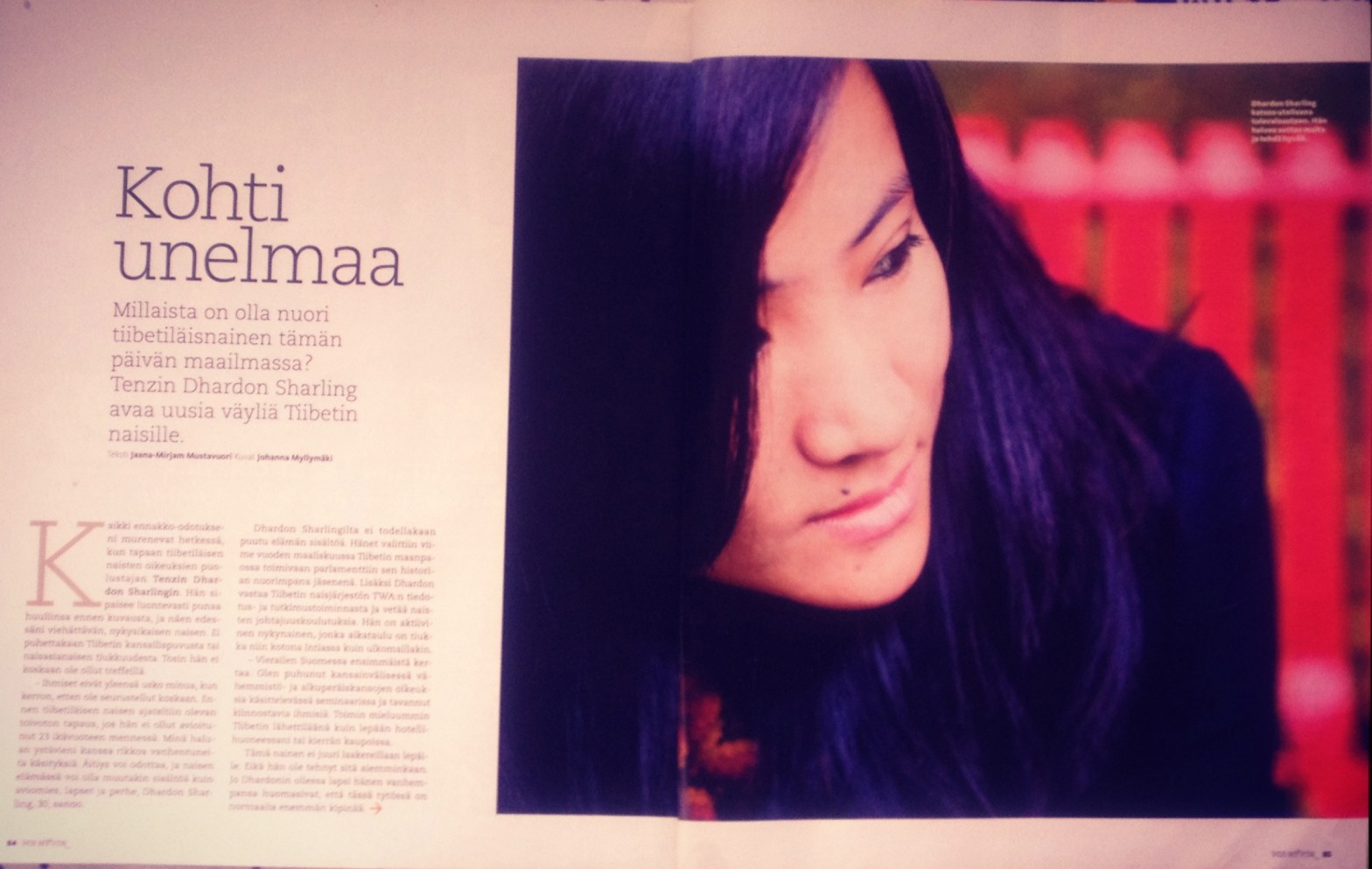 Tenzin Dhardon Sharling opens new ways to Tibetan women. Text: Jaana-Mirjam Mustavuori Photos: Johanna Myllymäki Source: VOI HYVIN (Finland’s lifestyle magazine) Interview date: November 6, 2011 Place: Helsinki, Finland Translation from Finnish to English: Erja Sini-Kaarina Varis, edited by Albion M. Butters All expectations dissolve in an instant when I meet this speaker of TibetanContinue reading “TOWARDS THE DREAM, How is it to be a Tibetan woman in today’s world?”